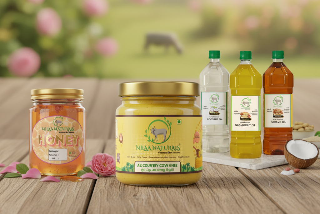 At Nilaa Naturals, we bring you Rose Honey, wholesome A2 Cow Ghee, and cold-pressed oils that keep your body strong and your soul nourished — 100% natural, chemical-free, and authentic.