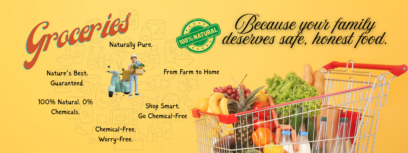 Every grain, vegetable, and pantry staple comes from verified farmers who follow natural practices. No chemicals. Full transparency. Our guarantee: wholesome groceries you can rely on.